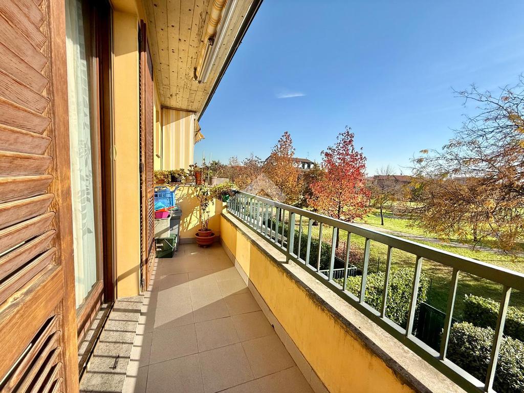 CASIRATE D'ADDA Centro 'Fronte Parco degli Alpini': In una delle zone residenziali più belle del paese (adiacenti scuole, posta, banche, mezzi di trasporto e negozi di prima necessità), proponiamo in vendita appartamento di 75 mq posto in piccola palazzina signorile edificata nel nel 2000 e dotato di ampia cantina e box di proprietà. L'immobile, esposto a sud con affaccio magnifico sul parco degli Alpini, vanta inoltre una tripla esposione sud, ovest e nord ed è collocato al primo ed ultimo piano di questa palazzina tenuta in ottimo stato di manutenzione e con spese condominiali davvero molto basse. COMPOSIZIONE: Ingresso sul luminosissimo soggiorno con accesso sull'ampio balcone, cucina abitabile, disimpegno, due camere da letto, secondo balcone e cantina di 5 mq e box singolo di proprietà di mq 15. ULTERIORI INFORMAZIONI: Riscaldamento autonomo con spese condominiali annue di 450 euro, cancello carrale elettrico, serramenti in legno con doppi vetri, tenda da sole sul balcone a sud, impianto di climatizzazione, porta blindata, tripla esposizione, primo piano ed ultimo. Questo appartamento è ideale per delle giovani coppie o per dei single che hanno l'esigenza di avere una stanza in più per utilizzarla a seconda delle proprie esigenze. Davvero notevole ed unico il contesto e soprattutto la tranquillità che si respira entrando in casa.