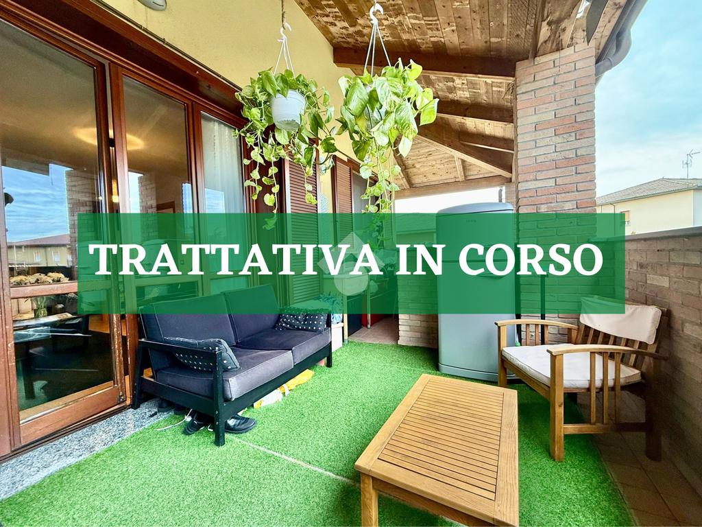 CASIRATE D'ADDA Zona Centro: In zona residenziale, comoda per il centro paese con tutti i servizi di primissima necessità, distante 3 Km da Treviglio con la sua Stazione Fs centrale e il casello autostradale . proponiamo appartamento in tripla esposizione di 66 mq edificato nel 2010, in classe energetica B, con terrazzo loggiato di 18 mq, cantina e box di proprietà. L'immobile, posto al secondo ed ultimo piano servito da ascensore, è composto da ingresso, ampio soggiorno dal quale si accede sul terrazzo, cucina abitabile, disimpegno, bagno padronale con doccia, lavatrice e asciugatrice, camera matrimoniale, cantina e box posti al piano interrato. ULTERIORI INFORMAZIONI: Riscaldamento autonomo a pavimento con spese condominiali annue pari ad euro 1.200, cancello carrale elettrico, videocitofono, ascensore condominiale, serramenti in legno con doppi vetri, impianto di climatizzazione, tende da sole e porta blindata. Libero da aprile 2026