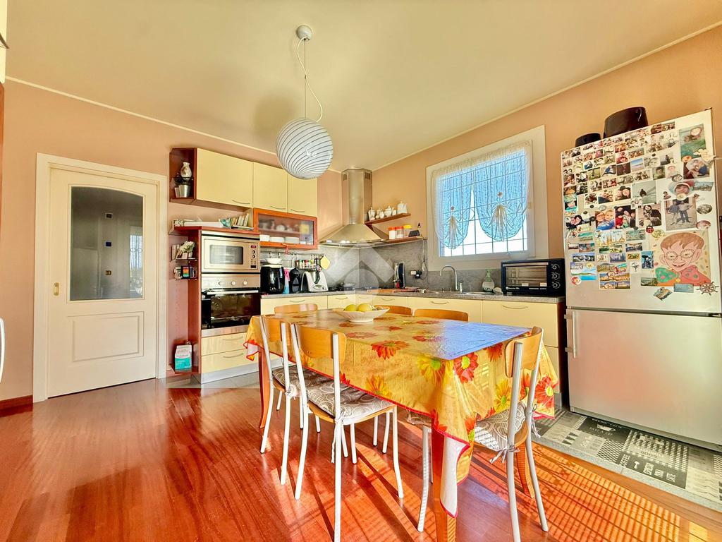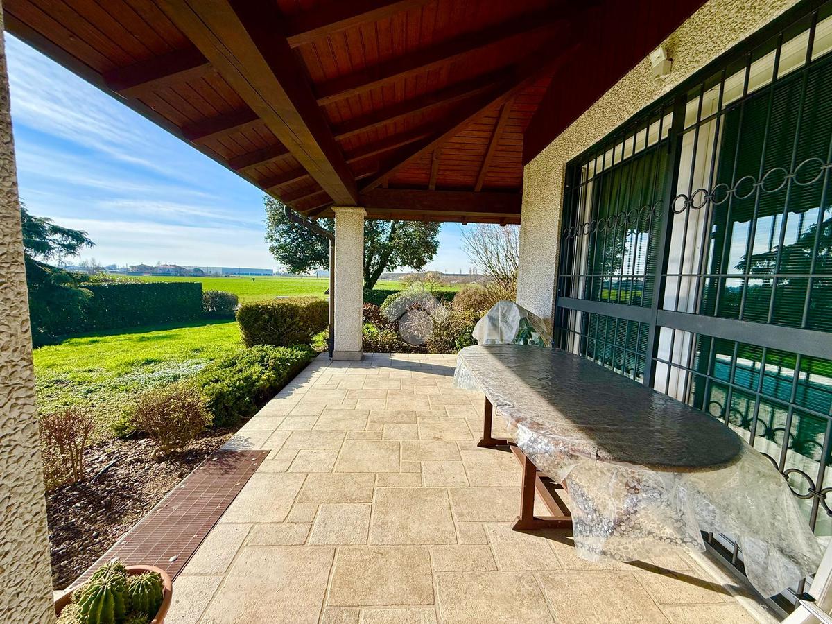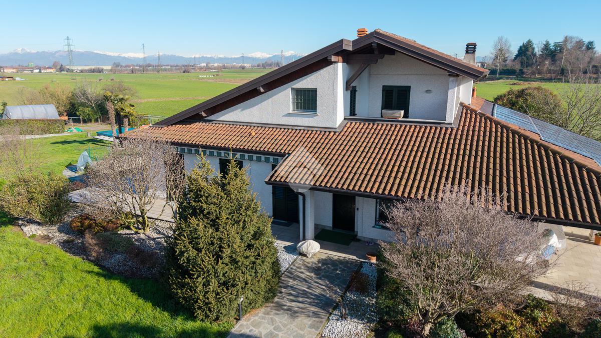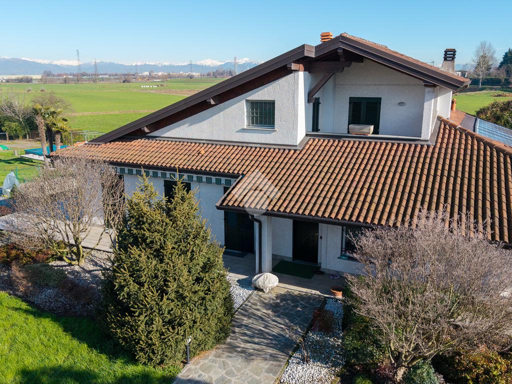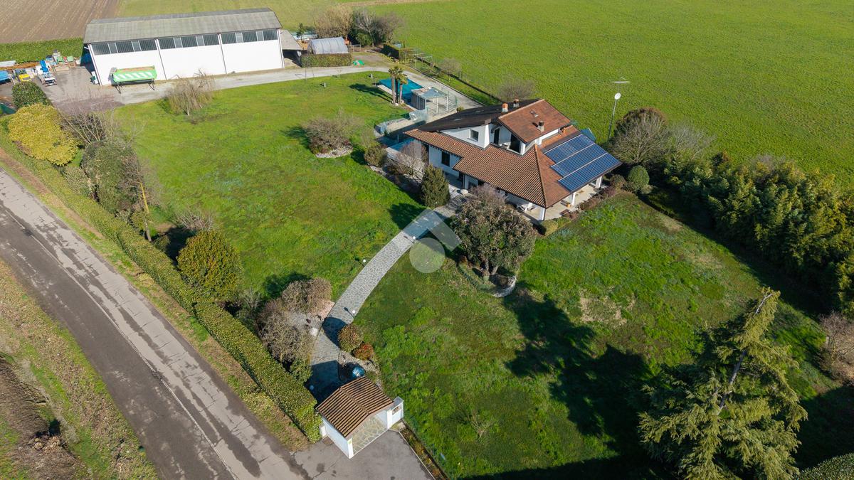CASIRATE D'ADDA (3 Km da Treviglio): immersa nel verde e nella tranquillità delle campagne agricole circostanti, distante 2 km dal casello autostradale di Treviglio, proponiamo in vendita villa singola di 200 mq abitativi realizzata nel 2003 su lotto di terreno privato di 4.850 mq. Portico di 30 mq, taverna di 40 mq, lavanderia, due autorimesse per un totale di 56 mq e possibilità acquisto a parte di capannone di mq 460 su area privata di 2.700 mq. L'immobile è composto al piano terra da ingresso, ampio soggiorno con camino a legna e zona pranzo, cucina abitabile, disimpegno, tre camere da letto (di cui una organizzata come ulteriore cucina) e due bagni finestrati; al piano primo due camere da letto, bagno, terrazzo e locale sottotetto agibile e non abitabile; al piano interrato due cantine, lavanderia, taverna con camino a legna, locale tecnico e due ampie autorimesse. Giardino privato di 4.850 con laghetto e portico di 30 mq. ULTERIORI INFORMAZIONI: Riscaldamento autonomo con caldaia a Pellet, impianto d'allarme, impianto fotovoltaico, videocitofono, cancello carrale elettrico, serramenti in PVC con doppi vetri, impianto di climatizzazione, zanzariere, inferriate di sicurezza e parquet in tutta l'abitazione.