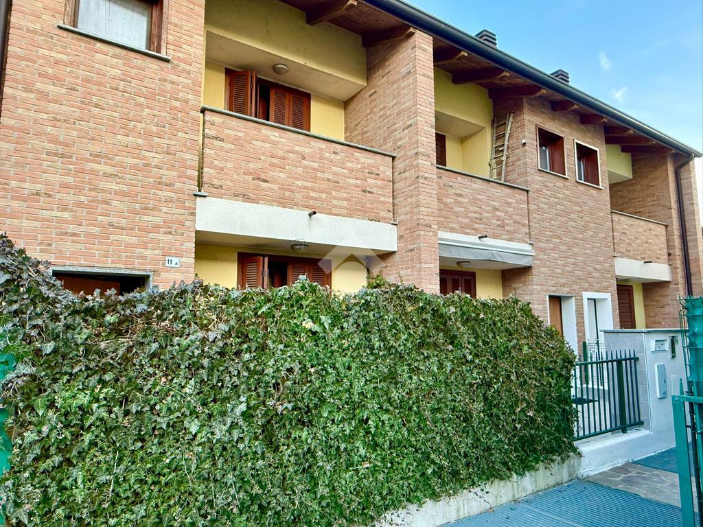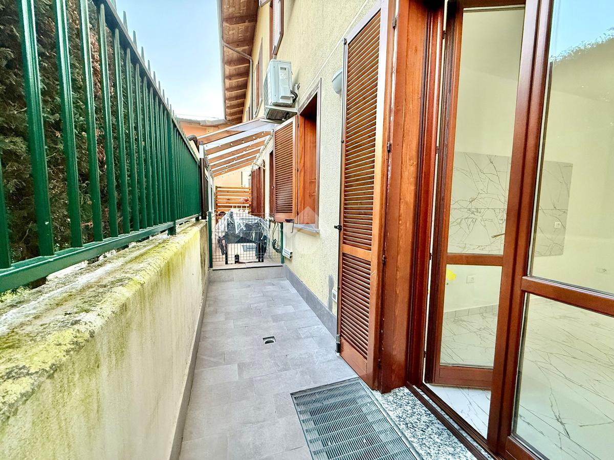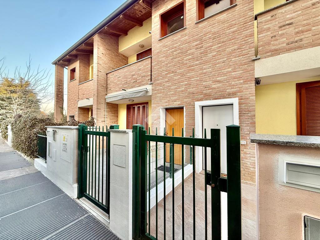 CASIRATE D'ADDA Zona centro: In zona residenziale adiacente il centro paese e comodissima per il casello autostradale e la stazione Fs centrale di Treviglio proponiamo porzione di villetta a schiera di 130 mq disposta su due livelli oltre piano interrato, box e giardinetto di proprietà fronte e retro. L'immobile è libero subito. DISPOSIZIONE INTERNA: al piano terra ingresso su cortile privato esposto ad ovest, soggiorno luminoso, cucina abitabile dalla quale si accede nel cortiletto privato lato est e bagno; al piano primo due camere da letto con bagno padronale e soprastante sottotetto ad uso ripostiglio; al piano interrato taverna, bagno e disimpegno che conduce direttamente al box di proprietà di circa 15 mq. ULTERIORI INFORMAZIONI: Riscaldamento autonomo a pavimento, serramenti in legno con doppi vetri, videocitofono, impianto di climatizzazione, porta blindata, zanzariere, tende da sole e cappotto isolante in facciata. L'immobile è stato edificato nel 2013 ma è stato ristrutturato internamente nel 2024.