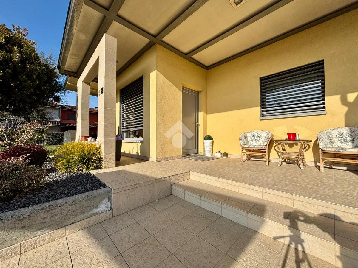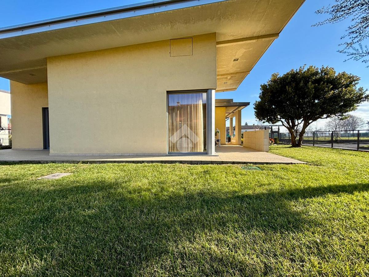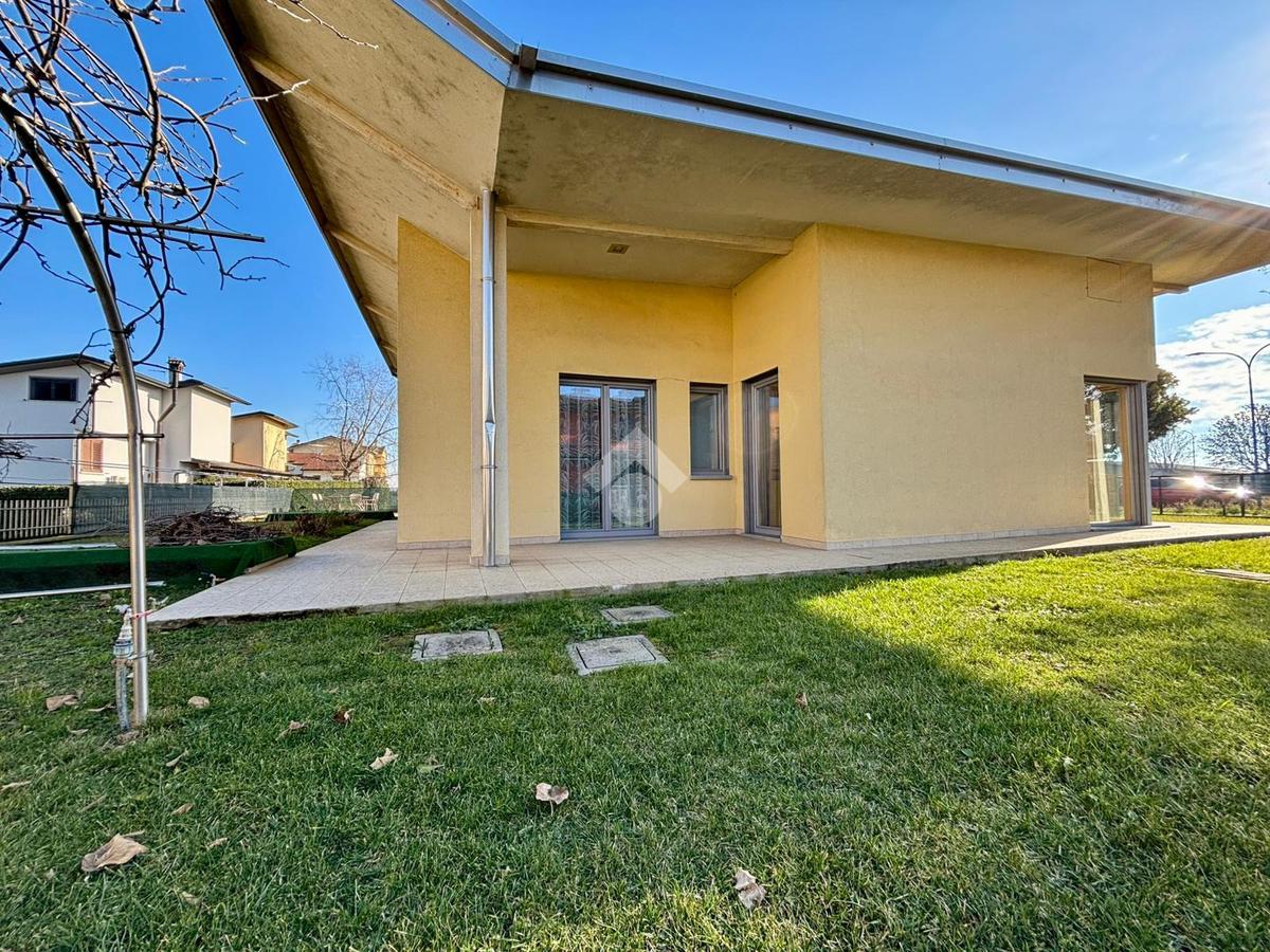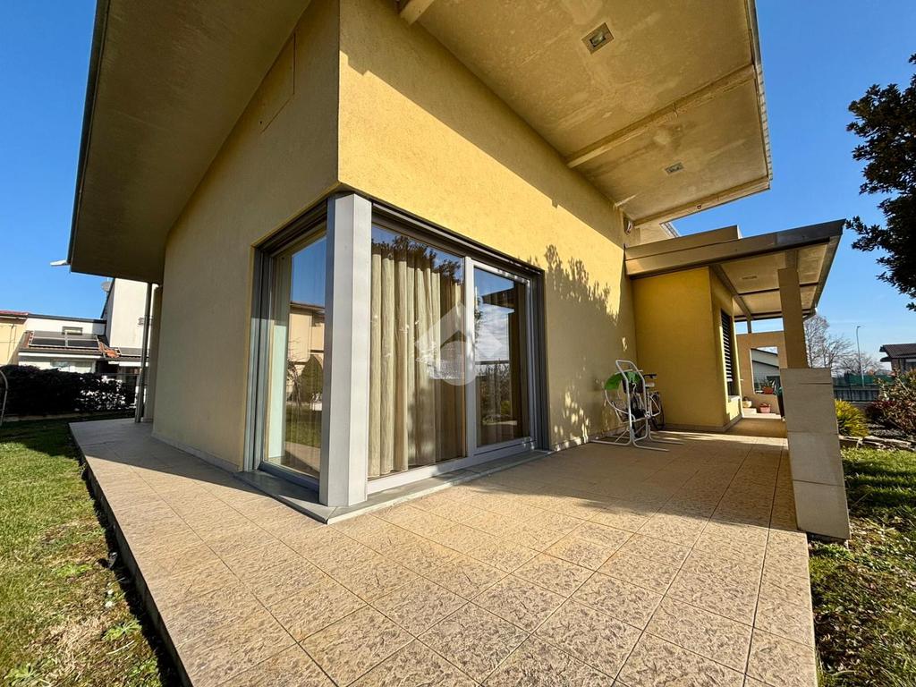 PAGAZZANO Zona residenziale (soli 5 km da Treviglio): in contesto di sole ville, tranquillo e riservato, proponiamo villa singola edificata nel 2009 di 260 mq commerciali, sviluppata su unico piano con giardino privato di 475 mq che circonda l'abitazione, garantendo uno spazio esterno riservato e piacevole oltre a taverna rifinita, lavanderia, locale tecnico, box doppio e spazio manovra coperto utilizzabile come comodo posto auto di 60 mq. La villa si compone al piano terra da ingresso, soggiorno di oltre 40 mq, cucina abitabile di 15 mq, disimpegno notte con due bagni finestrati, camera doppia e camera matrimoniale con spaziosa cabina armadio; al piano interrato lavanderia di 10 mq con doccia, taverna rifinita di 50 mq e accesso all'autorimessa doppia e al locale manovra coperto utilizzabile fino a quattro posti auto.