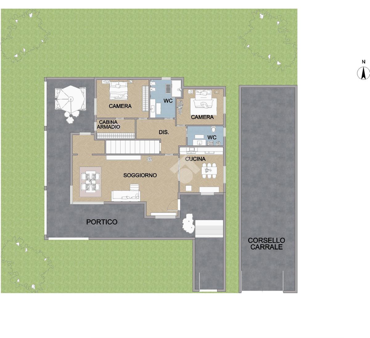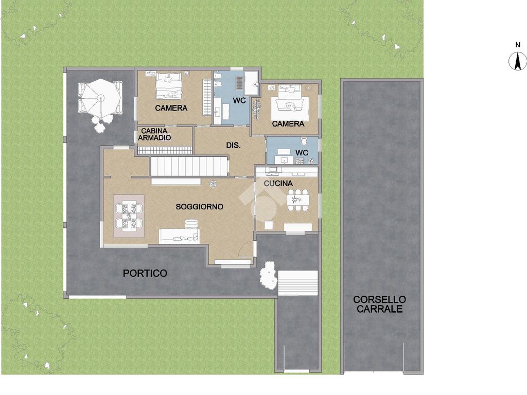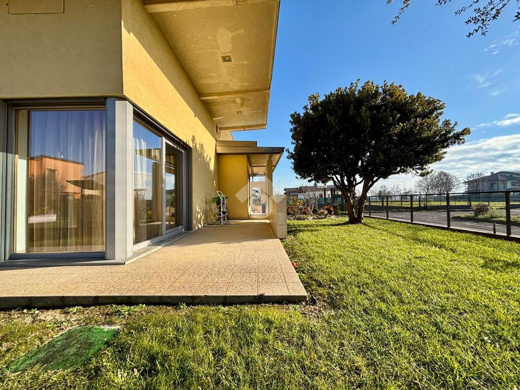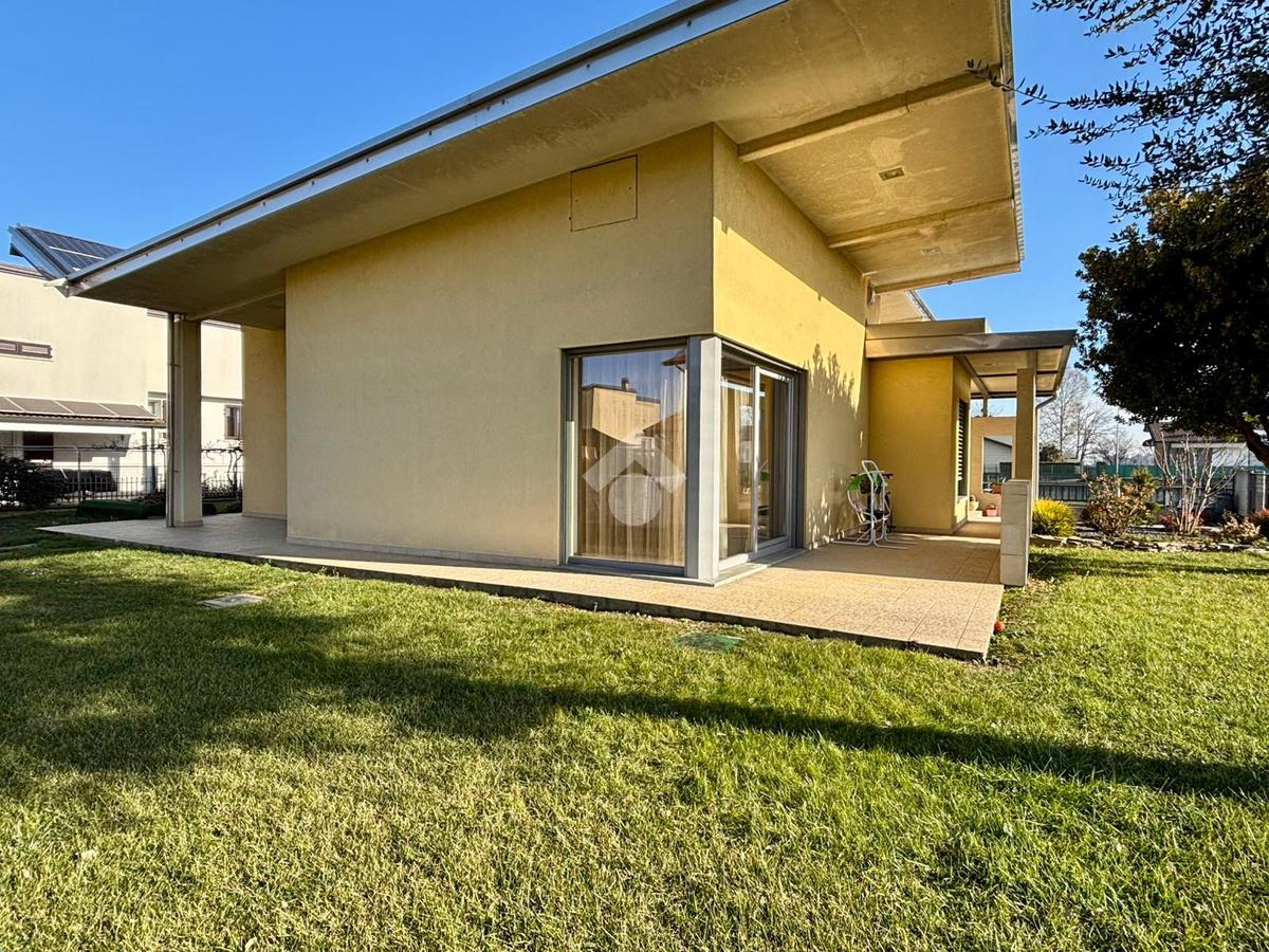 PAGAZZANO Zona residenziale (soli 5 km da Treviglio): in contesto di sole ville, tranquillo e riservato, proponiamo villa singola edificata nel 2009 di 260 mq commerciali, sviluppata su unico piano con giardino privato di 475 mq che circonda l'abitazione, garantendo uno spazio esterno riservato e piacevole oltre a taverna rifinita, lavanderia, locale tecnico, box doppio e spazio manovra coperto utilizzabile come comodo posto auto di 60 mq. La villa si compone al piano terra da ingresso, soggiorno di oltre 40 mq, cucina abitabile di 15 mq, disimpegno notte con due bagni finestrati, camera doppia e camera matrimoniale con spaziosa cabina armadio; al piano interrato lavanderia di 10 mq con doccia, taverna rifinita di 50 mq e accesso all'autorimessa doppia e al locale manovra coperto utilizzabile fino a quattro posti auto.