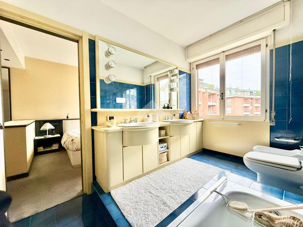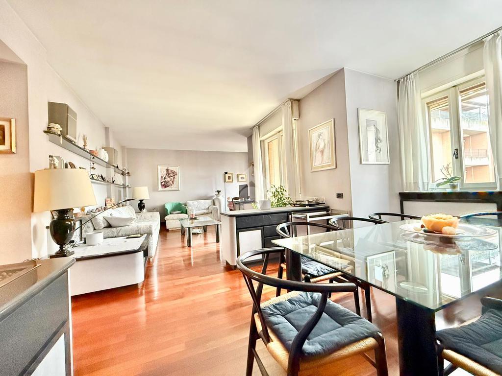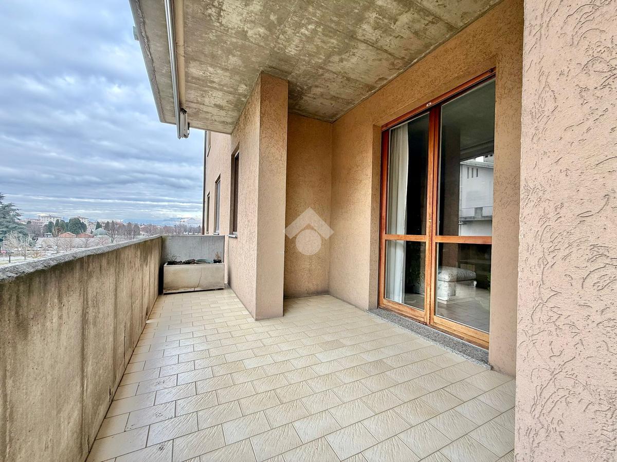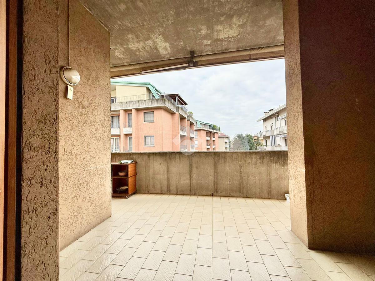 TREVIGLIO ZONA CENTRALE: A dieci minuti dal centro storico cittadino, posto in una via residenziale molto tranquilla a fondo chiuso, appartamento di 145 mq commerciali in tripla esposizione con ampio terrazzo, doppi servizi, lavanderia attrezzata, cucina abitabile, cantina e due box singoli inclusi nel prezzo. Vista l'ampia dimensione dell'immobile è possibile ricavare una terza camera da letto. DISPOSIZIONE INTERNA: Ingresso, ampio soggiorno con accesso sul terrazzo esposto ad ovest, cucina abitabile con accesso sul secondo terrazzo esposto ad est, disimpegno, lavanderia attrezzata, bagno, ampia camera, camera matrimoniale con bagno padronale finestrato al suo interno, cantina di 5 mq e due box singoli posti al piano interrato. INFORMAZIONI AGGIUNTIVE: Riscaldamento autonomo (caldaia a condensazione) con spese condominiali annue pari ad euro 1.950 circa, ascensore condominiale, cancello carrale elettrico, serramenti in legno con doppi vetri, giardino condominiale, zanzariere, tende da sole elettriche, porta blindata e parquet nella zona giorno. Appartamento dalle grandi potenzialità posto in una zona tranquilla ma nello stesso tempo comoda al centro città e alla stazione Fs Centrale.