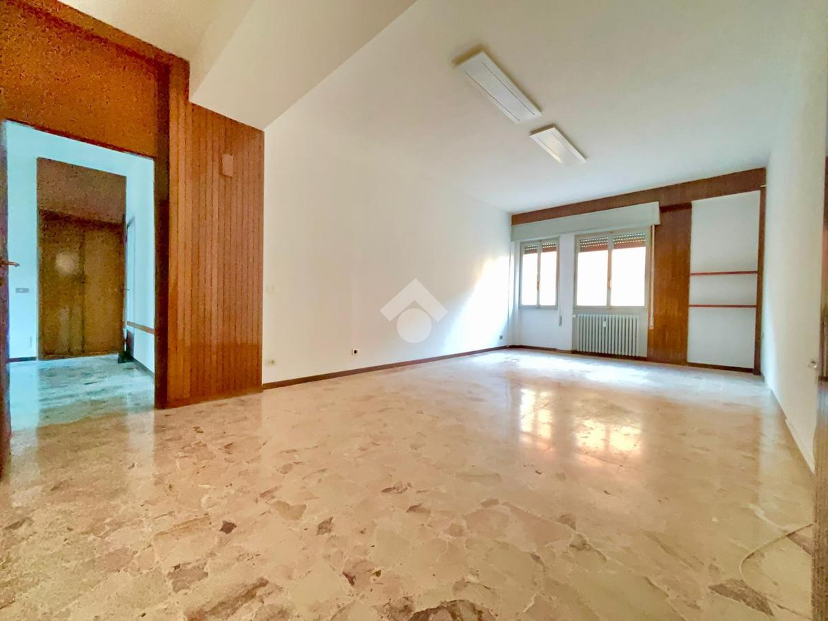 TREVIGLIO CENTRO Via Matteotti: In una delle vie più centrali e ricercate della città, distante 500 metri dalla stazione Fs centrale/ Passante per Milano, proponiamo ex ufficio commerciale di 90 mq circa con cambio di destinazione in residenziale completamente da ristrutturare e dotato di balcone con vista sul centro storico e cantina posta al piano interrato. L'appartamento è posto al primo piano di cinque e servito da ascensore condominiale. Pubblichiamo qualche esempio di come gli spazi attuali potrebbero essere ridistribuiti per ricavare un appartamento di tre locali e servizi. Possibilità di riqualificare l'immobile usufruendo del bonus ristrutturazione pari al 50% (prima casa) su un limite di spesa di euro 96.000,00 ULTERIORI INFORMAZIONI: Riscaldamento semiautonomo tramite termovalvole con spese condominiali annue pari ad euro 900 esclusi consumi, ascensore, serramenti in legno con vetro singolo, impianto di climatizzazione con la presenza di un solo split. Appartamento libero subito.