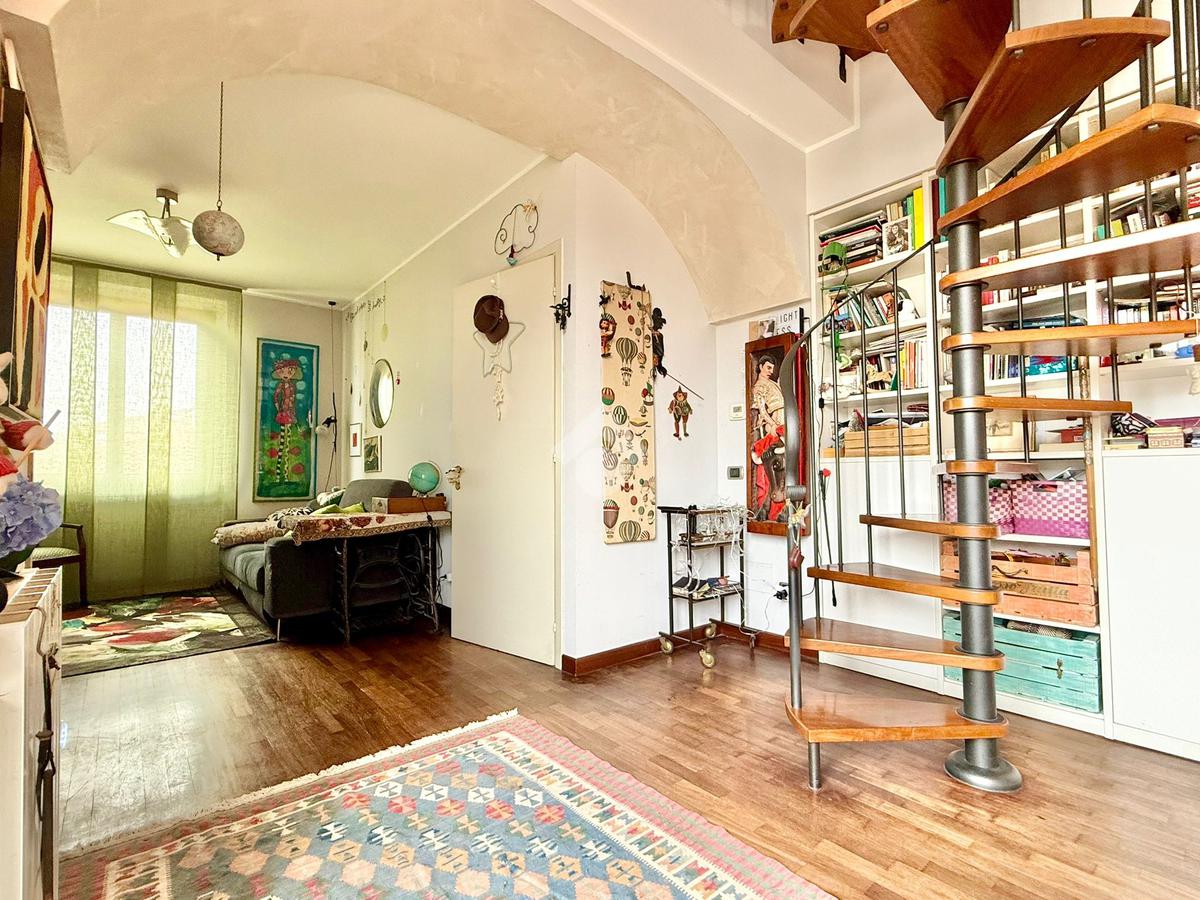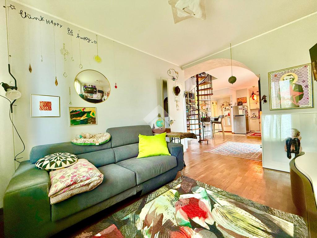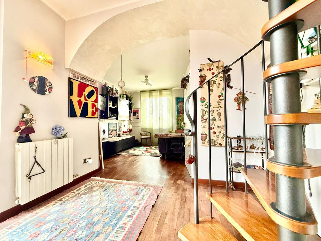 TREVIGLIO Zona Oberdan: In ottima zona residenziale, molto tranquilla e comoda per il centro storico cittadino, proponiamo appartamento su due livelli di 80 mq dotato di terrazzo, cantina e box di 14 mq. L'immobile è composto da ampia zona living con accesso sul terrazzo, bagno, camera matrimoniale, piccola lavanderia, disimpegno, cantina di 6 mq e box di proprietà di 14 mq posti al piano interrato. ULTERIORI INFORMAZIONI: Riscaldamento autonomo con spese condominiali annue pari ad euro 900 inclusa acqua potabile, cancello carrale elettrico, ascensore, serramenti in legno con doppi vetri, tende da sole, porta blindata e parquet in tutta l'abitazione.