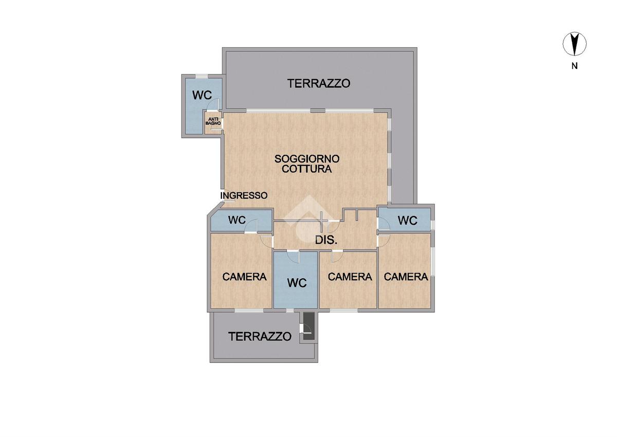 ATTICO CON QUADRUPLI SERVIZI N. 16 AL PIANO TERZO CON TERRAZZO DI 66 MQ: L'appartamento è composto da ingresso, zona living di 60 mq con accesso su terrazza di 50 mq, ampio disimpegno notte con nicchie per armadiature, due bagni, due camere da letto e camera matrimoniale con bagno privato e terrazzo di 16 mq (Tripla esposizione Sud, ovest-nord) box e posto auto privati inclusi nel prezzo.