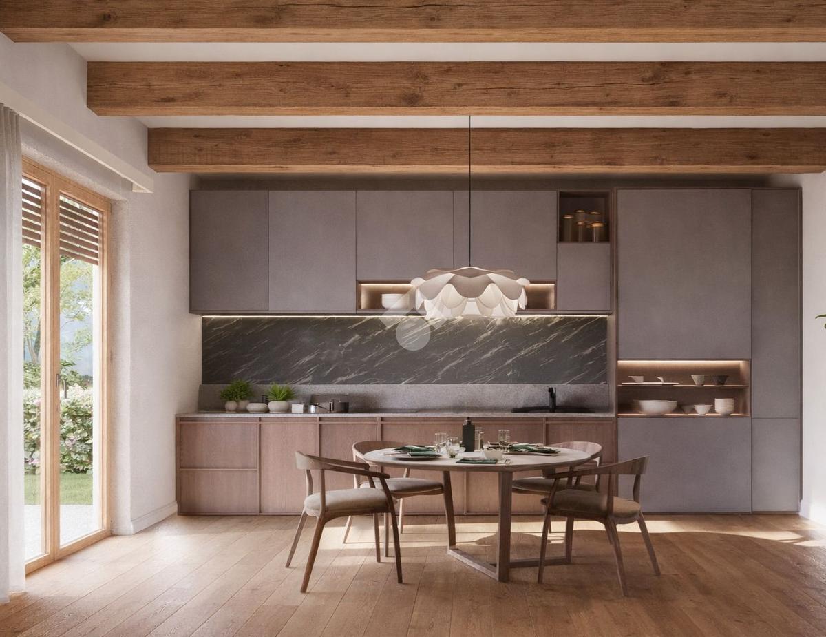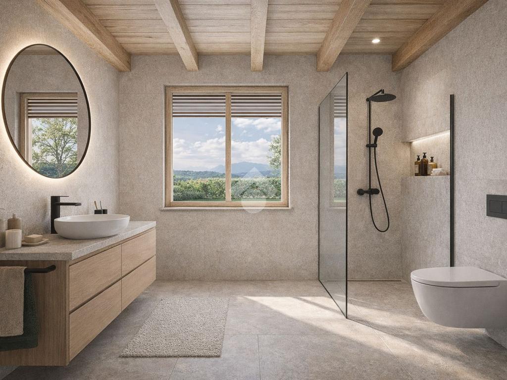Riscaldamento autonomo a pavimento (diviso per zone) tramite pompa di calore alimentata da impianto fotovoltaico privato di 6 Kw, impianto di climatizzazione canalizzato, tapparelle e basculante box elettriche, solai e tetto in legno a vista, serramenti in Pvc color legno di rovere con triplo vetro fonoassorbente, impianto elettrico frutti Biticino serie Living, termoarredi elettrici nei bagni con sanitari sospesi e capitolato di alta qualità per la scelta di pavimentazioni in grès porcellanato o parquet. Possibilità permuta del vostro immobile usato.