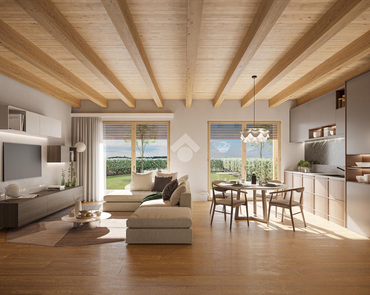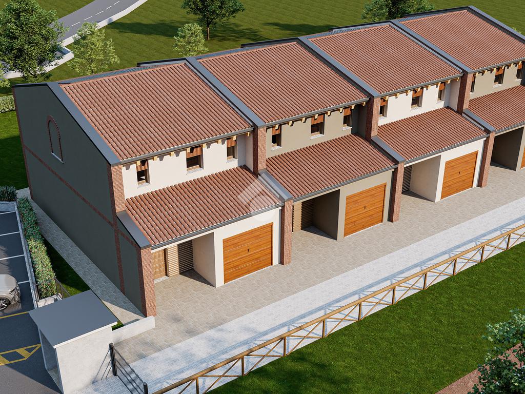 TREVIGLIO 'Residence Green Park Aurora': 'ESENTE DA PROVVIGIONI' - Prenotasi signorili ville a schiera laterali (Certificazione Energetica “A4”) composte al piano terra da ingresso, ampia zona living di oltre 37 mq con accesso sul portico e sul giardino privato di oltre 180 mq, bagno, ripostiglio e e box di mq 22; al piano primo bagno padronale, due camere da letto con balcone di 10 mq e camera matrimoniale con bagno privato al suo interno. CONSEGNA PREVISTA SETTEMBRE 2027.